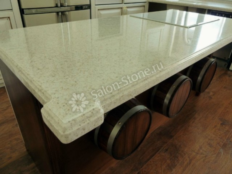 Столешница белого цвета с вкраплением для кухни