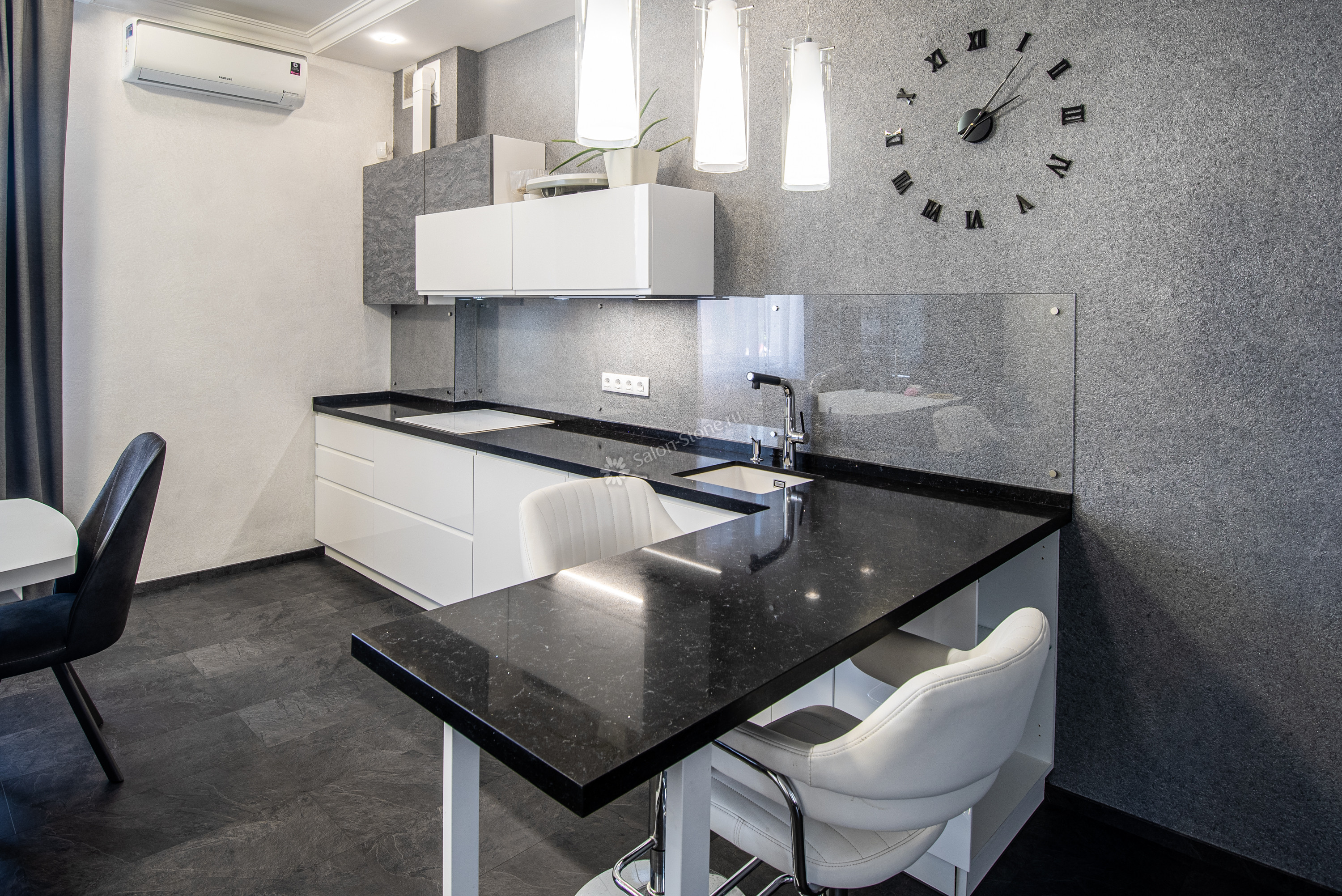 Кварцевая черная столешница для кухни