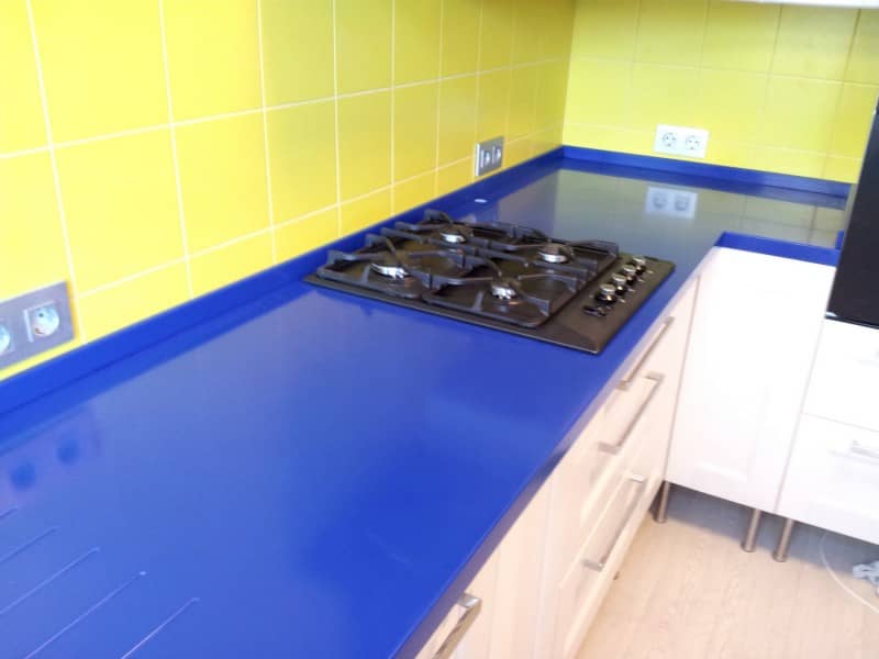 Угловая столешница ярко синяя из камня Corian