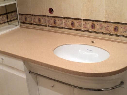 Бежевая столешница из искусственного камня Hi-Macs в ванную комнату